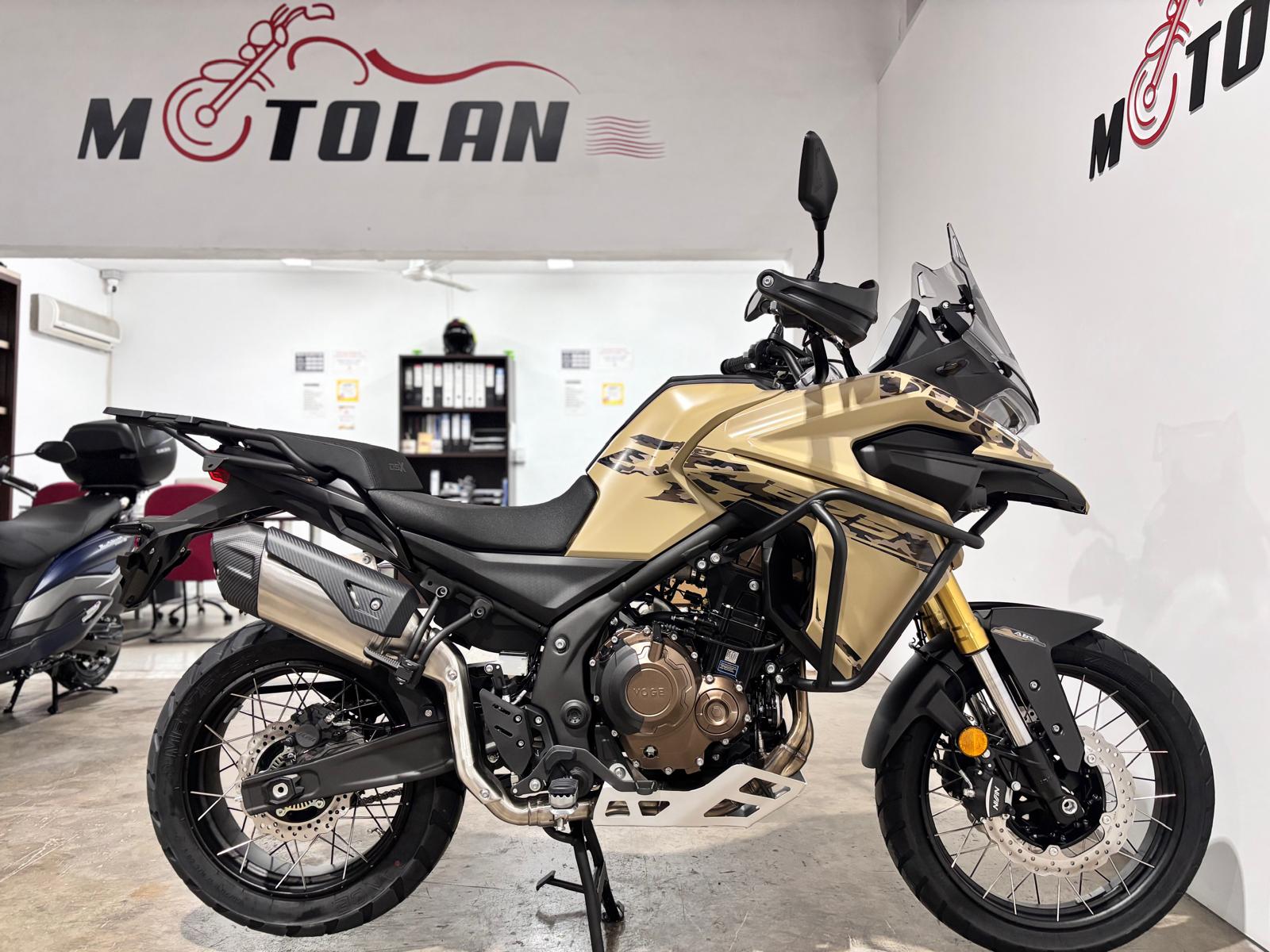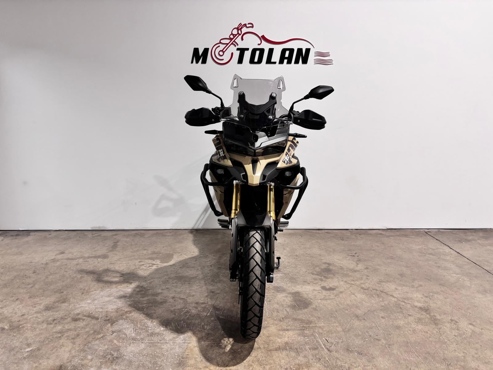EQUIPADA DE SERIE CON: LLANTAS 19"/17", FULL LED Y LUCES DRL, CAMARA FRONTAL HD, DOS MODOS DE CONDUCCION ESTANDAR Y SPORT, PANTALLA LCD DE 7" CON CONECTIVIDAD BLUETOOTH, SISTEMA DE NAVEGACION BASICA, CONECTIVIDAD SMARTPHONE, SISTEMA TURN BY TURN QUE CONSULTA LA PRESION CON LOS NEUMATICOS A TIEMPO REAL Y RECIBIR NOTIFICACIONES DE LLAMADAS ENTRANTES, PARAMANOS, DEFENSAS DE MOTOR , CUPULA REGULABLE EN DOS POSICIONES DE ALTURA, TOPCASE DESARROLLADO POR LOBO, USB, SUSPENSIONES KAYABA, FRENADA NISSIN, FAROS ANTINIEBLAS, CUBRE CARTEL METALICO, ETC